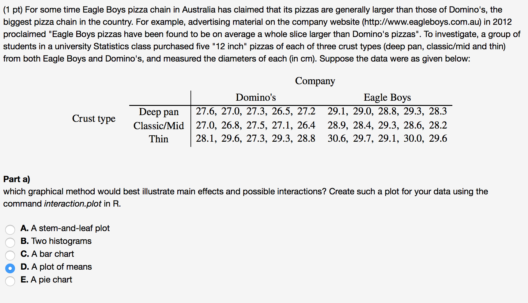 Solved For Some Time Eagle Boys Pizza Chain In Australia Chegg Com