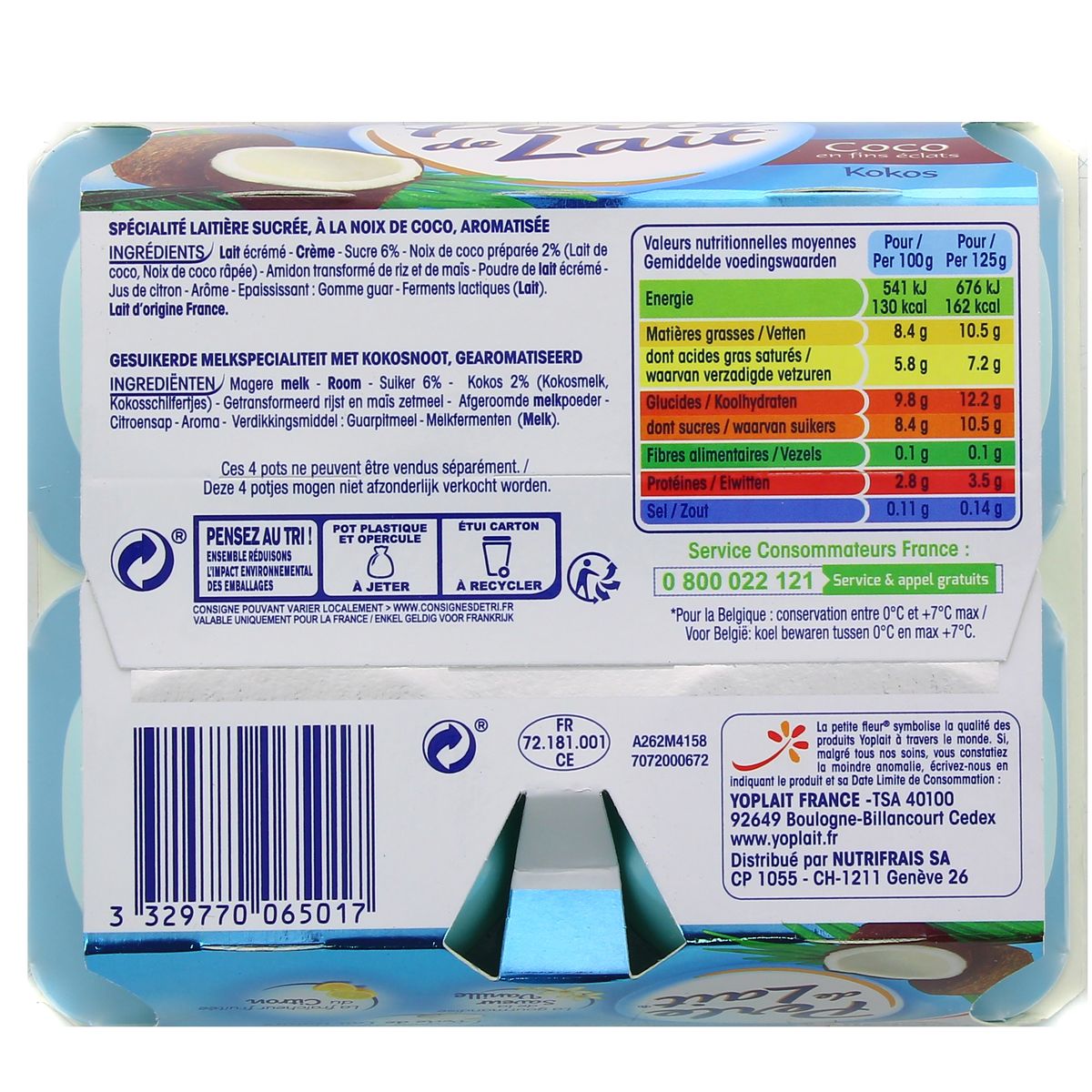Perle De Lait Coco En Fins Eclats 8 Pots Offre Economique Yoplait 1 Kg 2 X 4 X 125 G