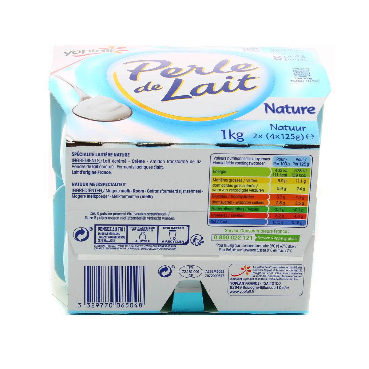 Perle De Lait Nature 8 Pots Offre Decouverte 1 Kg 2 X 4 X 125 G