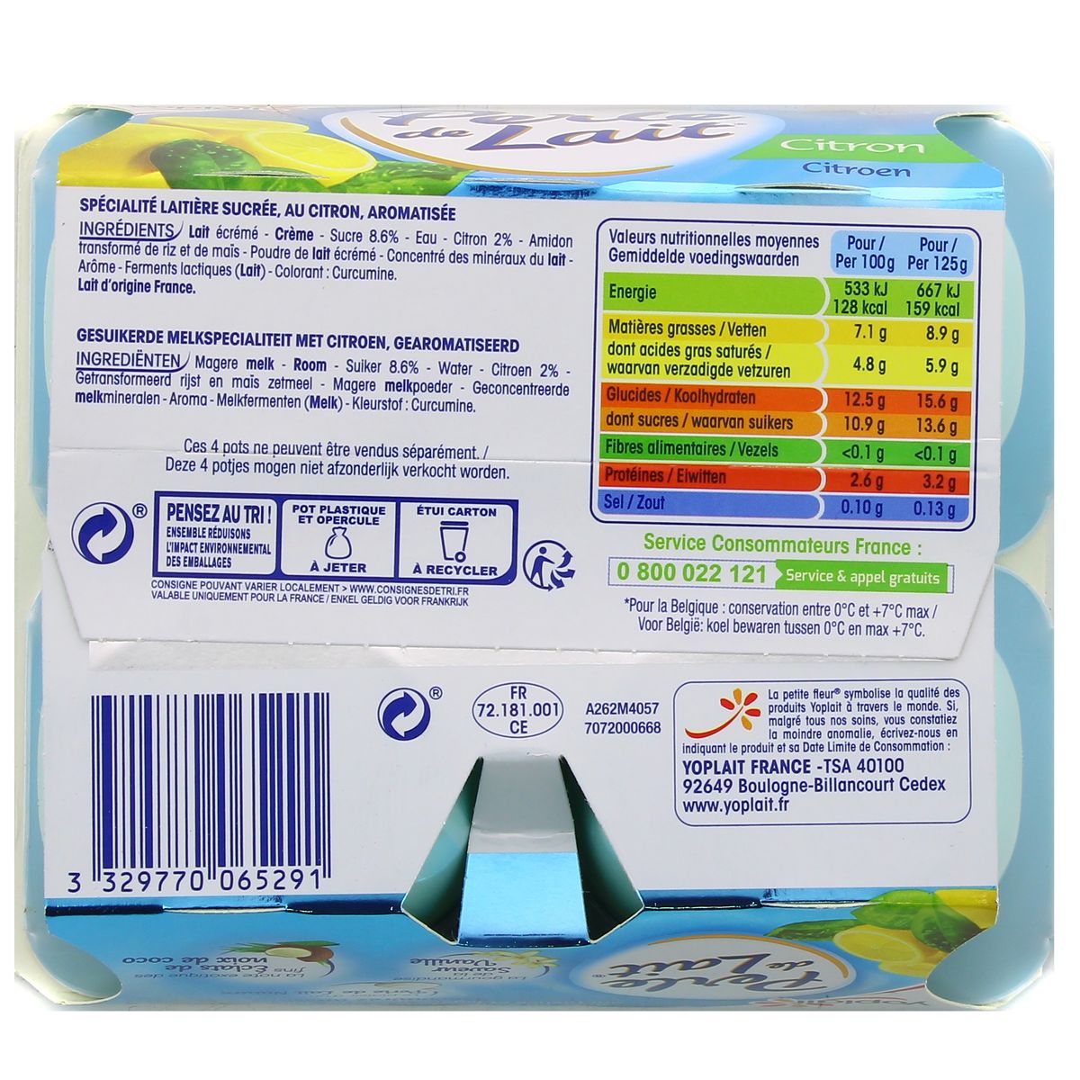 Perle De Lait Citron 500 G 4 Pots De 125 G
