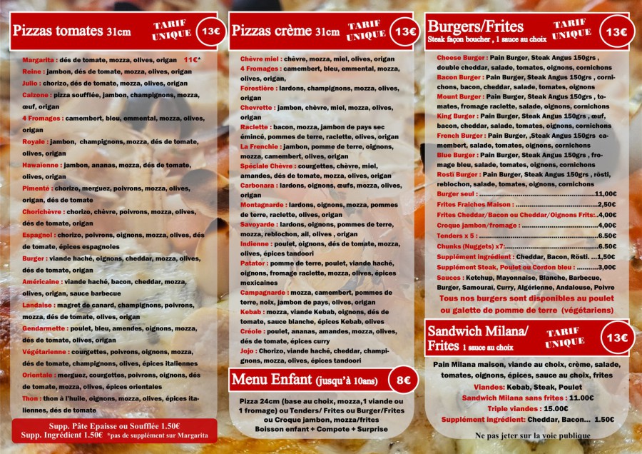Milana Pizza Les Pizzas